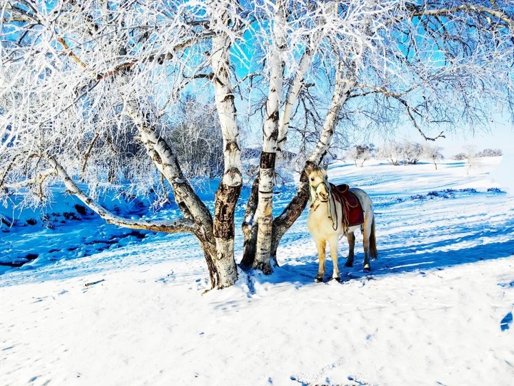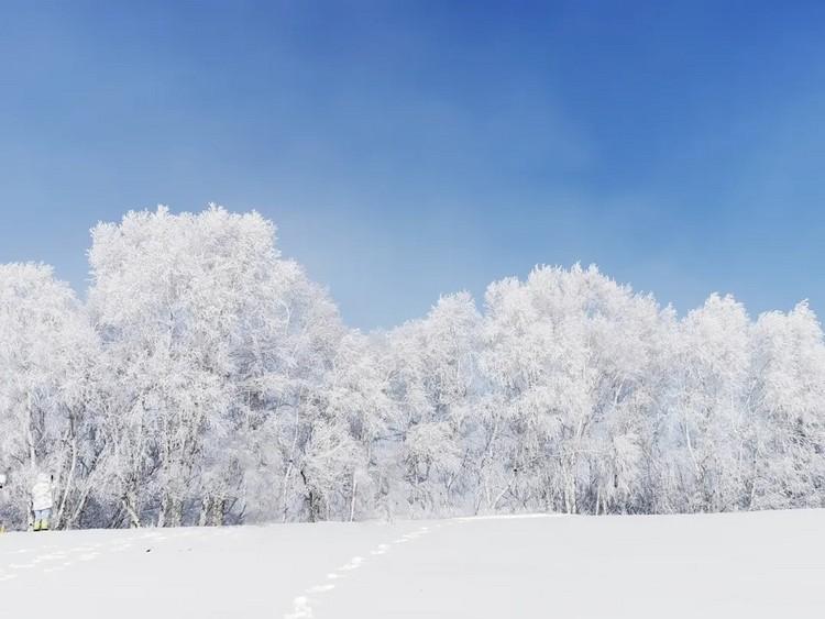 在北国的白色冬天里漫游,每一个雪中的脚印都是崭新的。