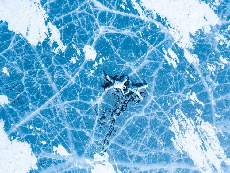 冬天的多伦滦源湖,湖面冰封,水中裂出千万道冰裂纹,瑰丽无比,简直就是现实版的冰雪奇缘。