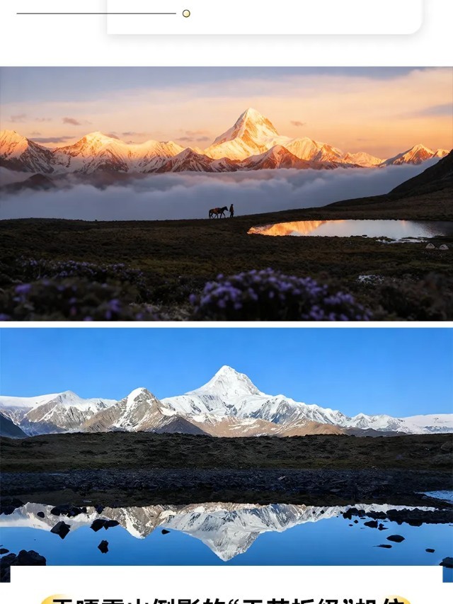 行程概览:大家今日可早起观看贡嘎雪山的日出。收拾好装备,吃过早餐回到上木居村,然后乘坐中转车前往子梅垭口徒步前往河池布。这里是距离贡嘎雪山最近的观景平台,在这里能够更加直观的感受到贡嘎的巍峨雄壮。大家在这里游玩拍照打卡后,再乘车回到上木居村休息。