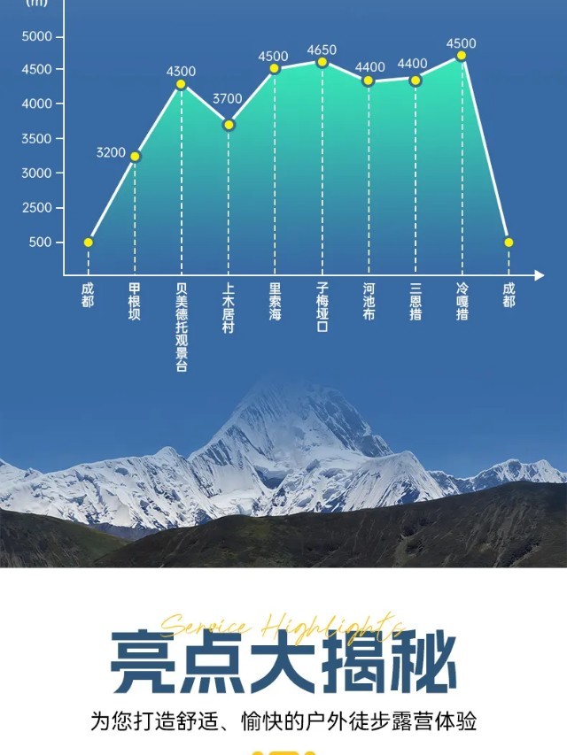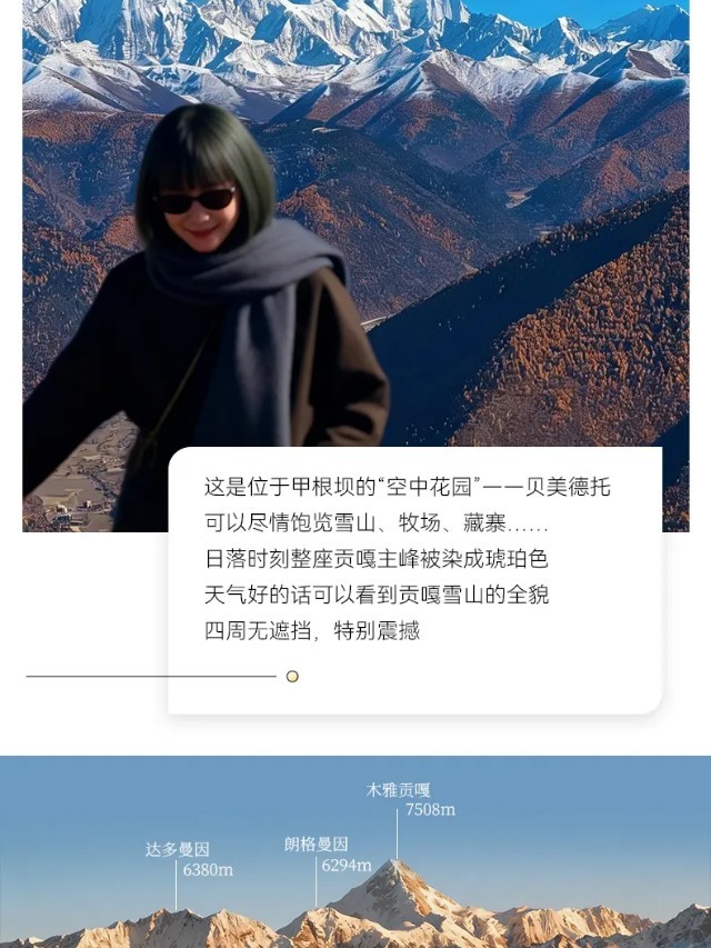▷ 海拔:贝美德托观景台4300m、甲根坝镇约3200m