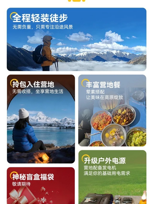 ▷ 餐食:早餐(营地餐)午餐(自理路餐)晚餐(藏家)
