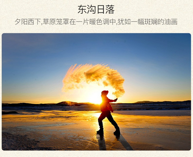 我们可以邂逅一场冬日草原震撼又浪漫的雪原日落,在夕阳映衬下,白桦树在雪地留下的倩影更是多姿多彩,感受茫茫雪域的光影变幻。
