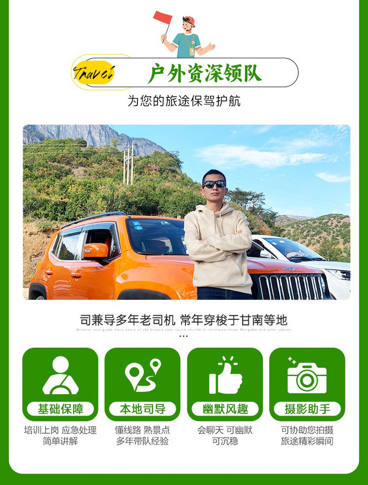 1、兰州集合当天,2人及以上免费赠送接机/站服务,请您提供航班信息/高铁车次。