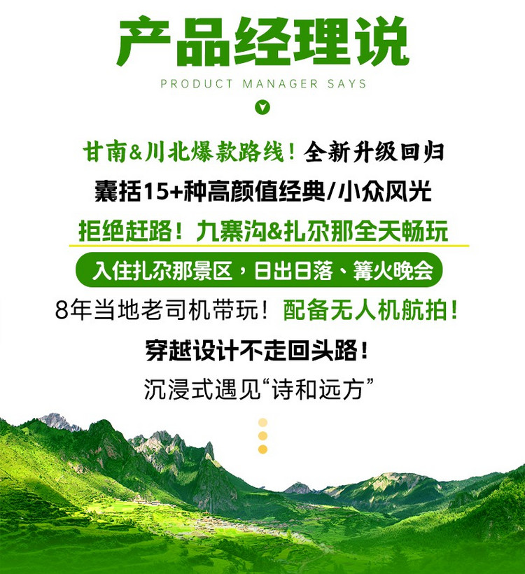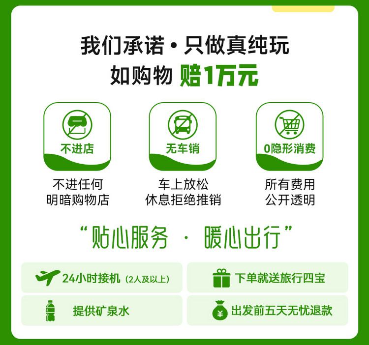 2、领票及排队进入景区等待时间根据当天客流决定。此日户外游览时间较长,紫外线较强,请备好防晒物品;因中餐自理,可自带干粮饮用水,景区内唯一用餐点为诺日朗餐厅;景区内,凭观光车票当日可在任一站点自由换乘游览,每辆观光车均有讲解员,请务必遵守集合时间哦。
