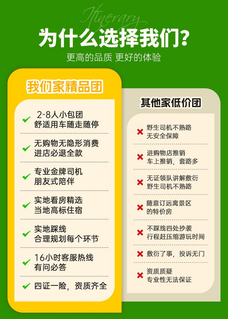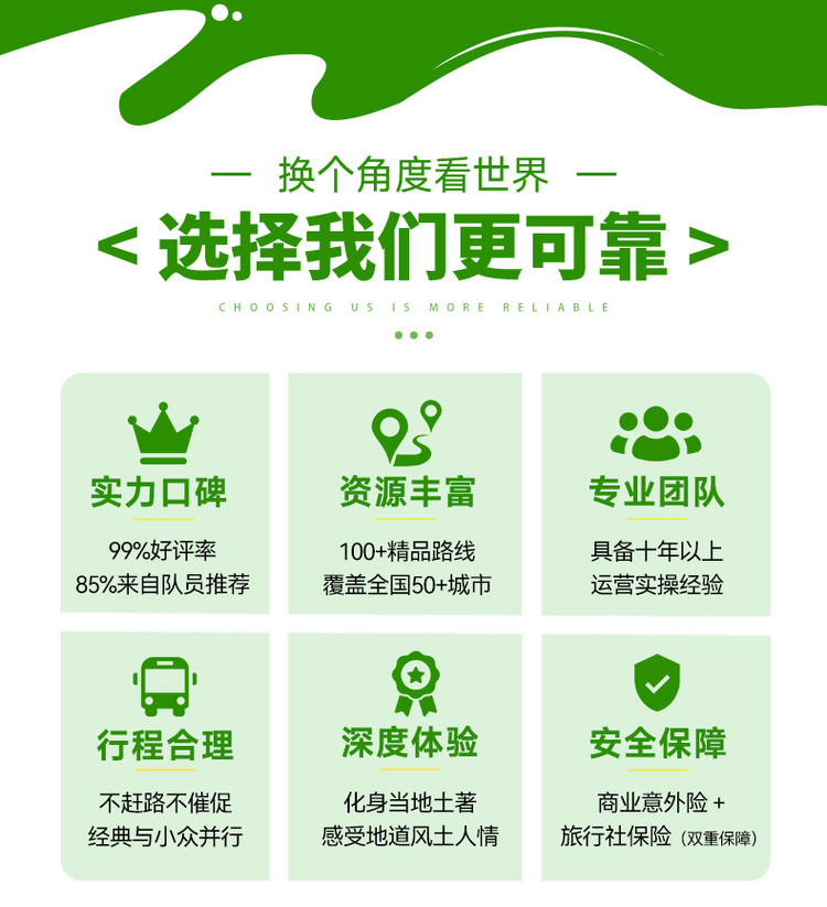 注:以上行程时间及顺序供参考,受天气、交通、景区调控及队员体能等不同影响有可能会调整,以领队实际安排为准。