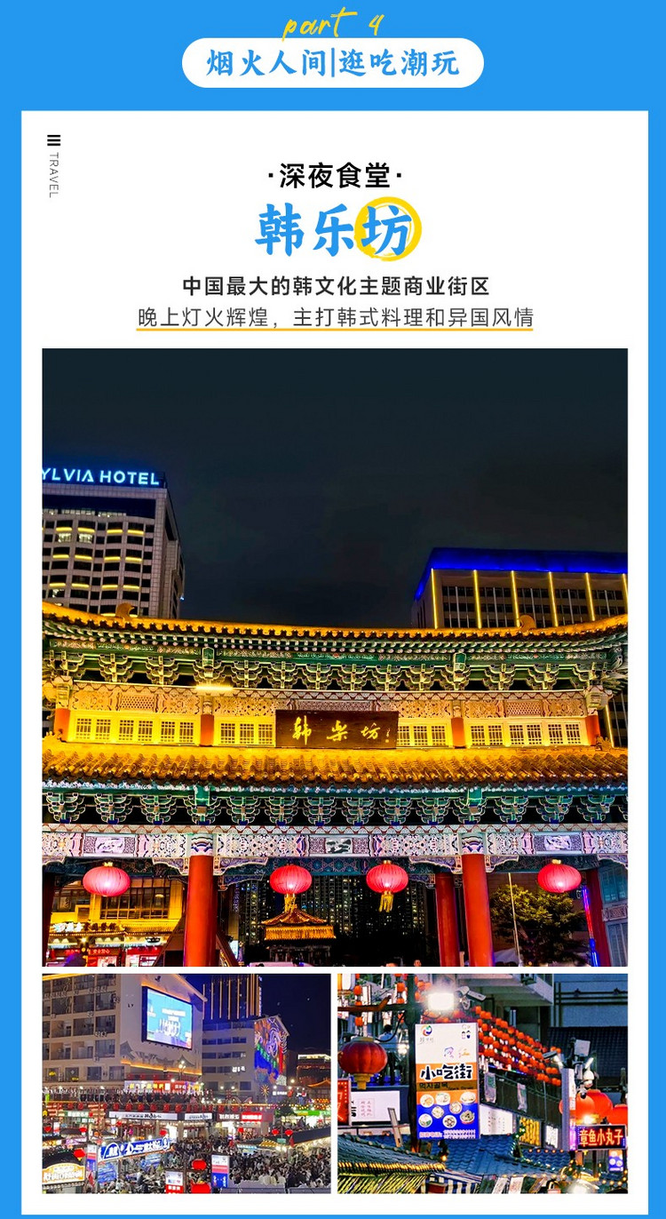 ·【韩乐坊】是中国首家韩文化主题商业公园,这里有很多韩国餐馆、超市、服装店等,你可以品尝正宗的韩国美食,如韩式烤肉、石锅拌饭、紫菜包饭等