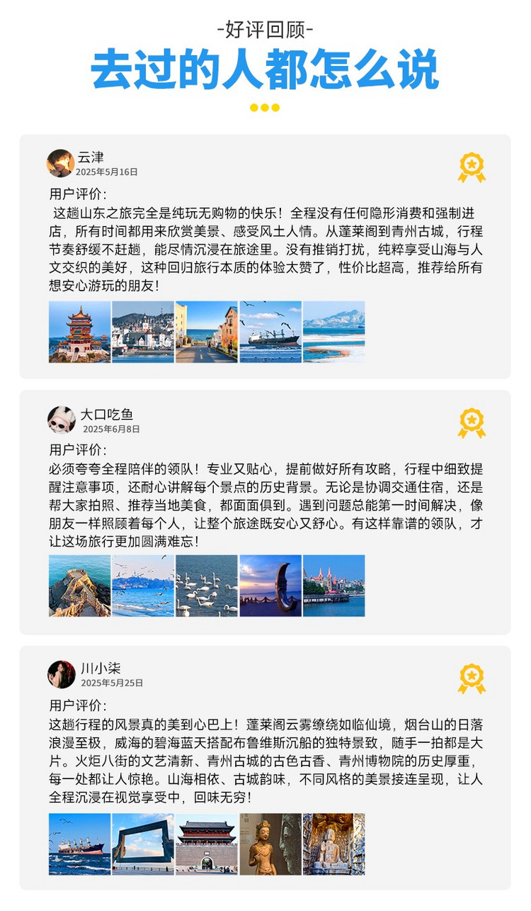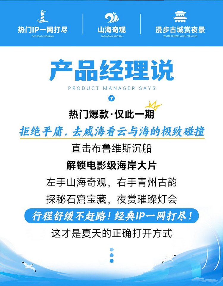 注:长岛渡船受季节性天气影响可能临时停运,非人力可控制,可能因此影响行程,请您知悉;