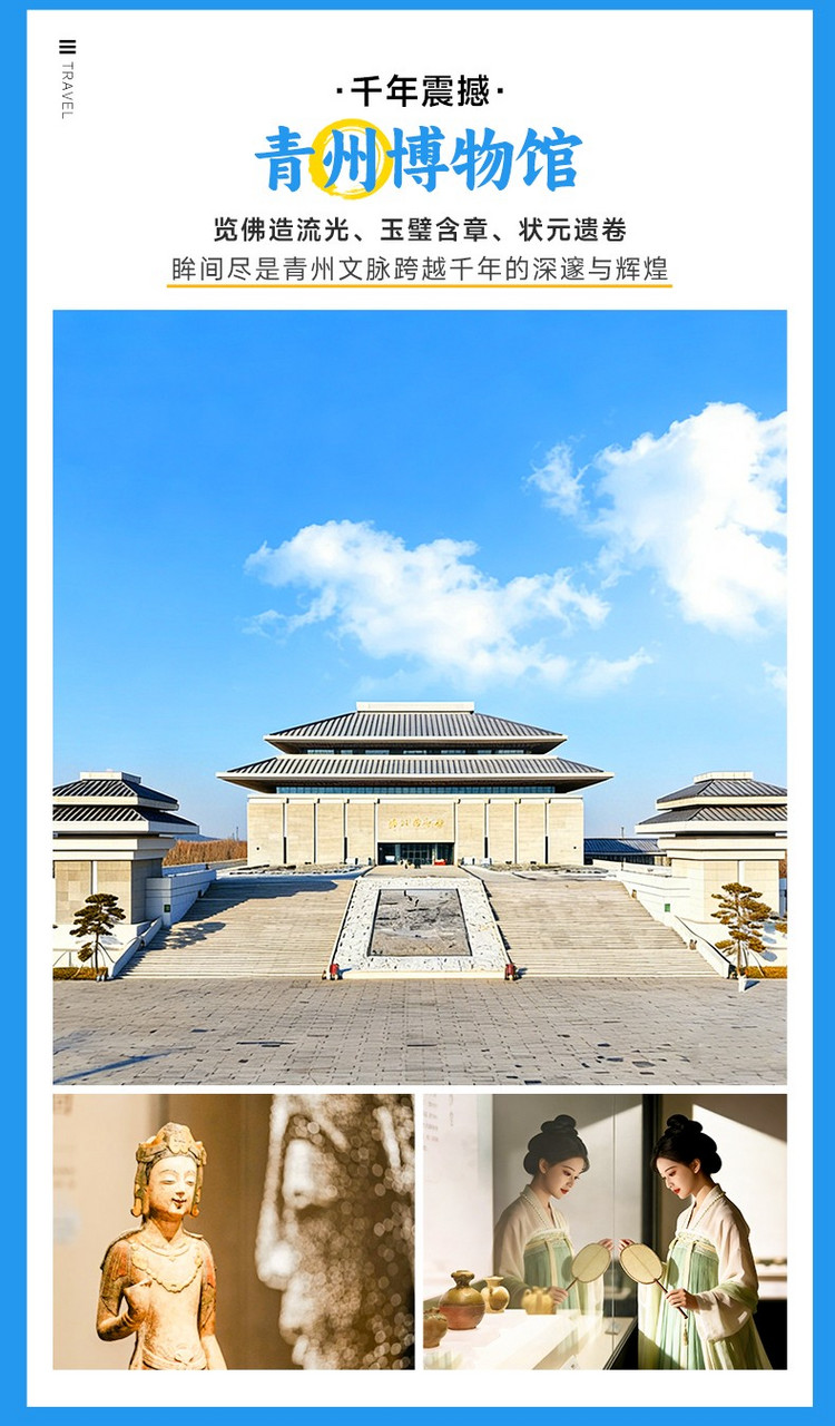 ·【青州博物馆】如果你觉得博物馆只是走马观花,那青州博物馆,绝对会颠覆你的认知。这儿,可能是全中国“ZUI反差”的博物馆。它只是一座县级馆,却拥有和故宫同级的国家一级博物馆头衔。凭的是什么?凭的就是硬核到让无数大馆都羡慕的家底。三大镇馆之宝,件件让你屏住呼吸: