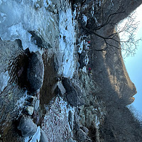 往日流水潺潺的河溪,凝结成洁白的“玉带”在山涧舞动。悬挂在崖壁之上,山谷之下,一派琼妆玉砌,凝固成冰瀑,冰床,冰梯,冰花,冰凌,闪着银光,似乎把人带进了瑶池仙境。这酷似晶莹剔透的童话世界,是老天赐给我们的冬日最美好的礼物。