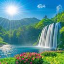 往日流水潺潺的河溪,凝结成洁白的“玉带”在山涧舞动。悬挂在崖壁之上,山谷之下,一派琼妆玉砌,凝固成冰瀑,冰床,冰梯,冰花,冰凌,闪着银光,似乎把人带进了瑶池仙境。这酷似晶莹剔透的童话世界,是老天赐给我们的冬日最美好的礼物。
