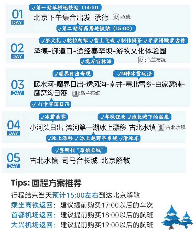 注:以上行程时间及顺序供参考,受天气、交通、景区调控及队员体能等不同影响有可能会调整,以领队实际安排为准。