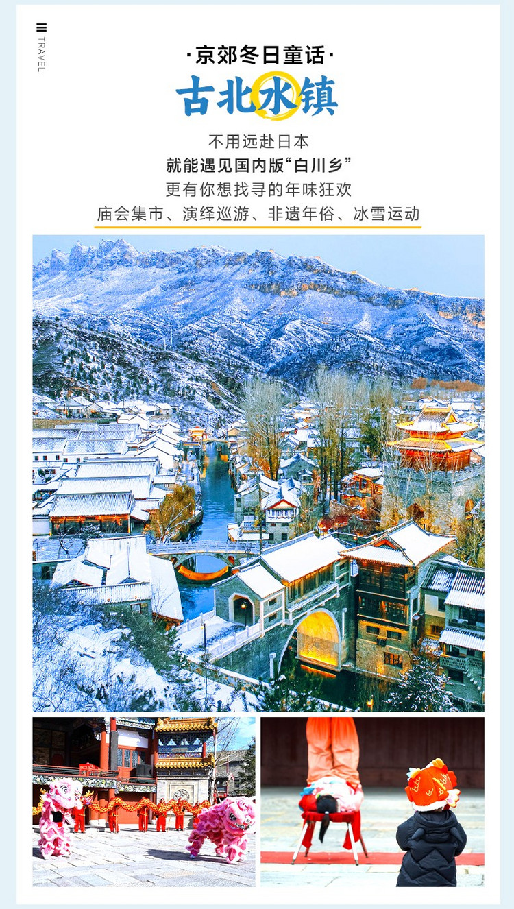 【长城庙会过大年】长城脚下过大年古北水镇将会带给你一个热闹的新年,带给你满满的仪式感窗花、对联、表演、市集糖人、灯笼、冰糖葫芦烧头香、猜灯谜各种年俗仪式陪你找回儿时年味过一个记忆中的中国年。
