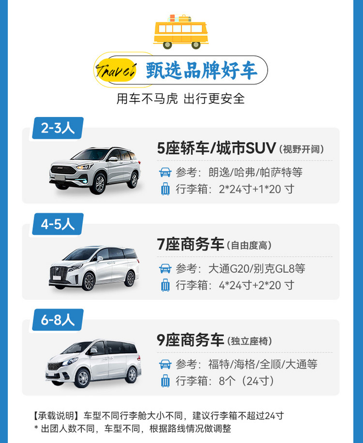 2、集合日请大家保持通信畅通,以便司机兼向导联系到您
