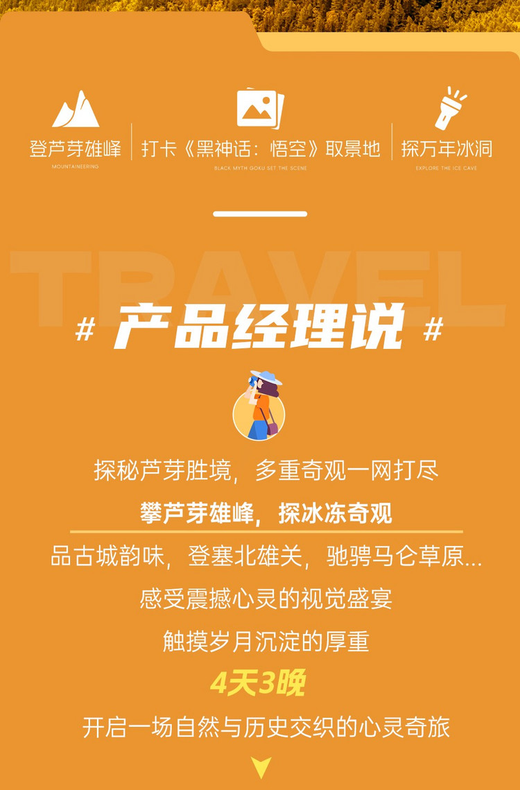 1、攀爬芦芽雄峰时,有些山路不好走,大家一定要注意安全,听从领队指挥安排,不做危险动作,同时建议大家结合自身实际情况进行游览;