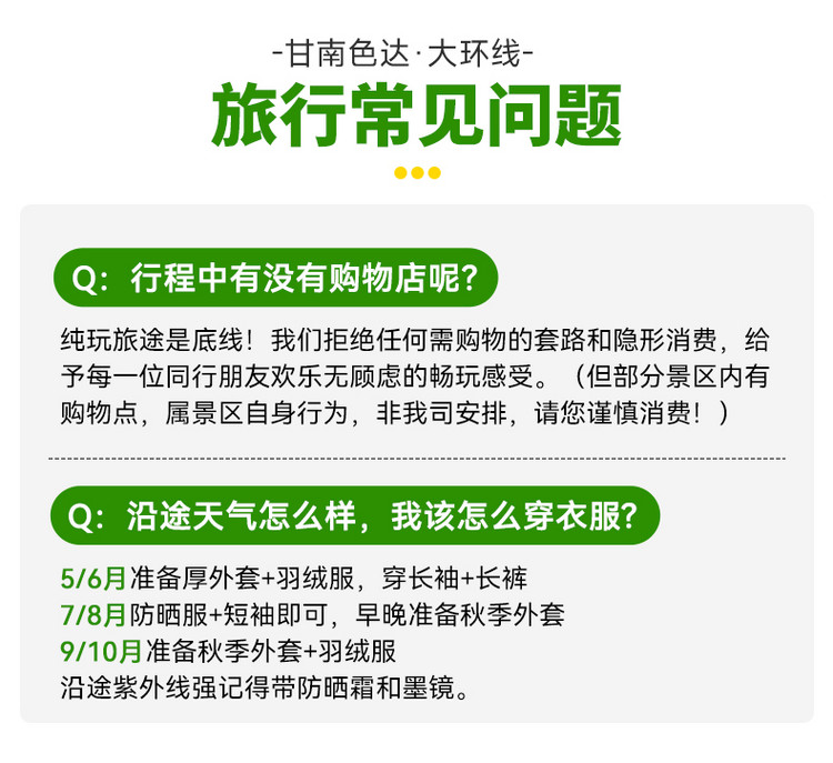 (3)建议预约下午的场次,若未预约到乘车票或约错日期/场次,导致无法正常游览,客人可自由在县城活动,我社团费不包含色达乘车票,不接受以此投诉或赔付。