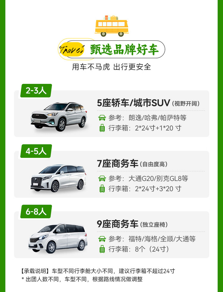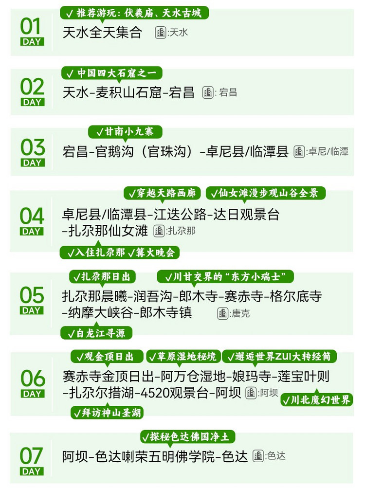 注:以上行程时间及顺序供参考,受天气、交通、景区调控及队员体能等不同影响有可能会调整,以领队实际安排为准。