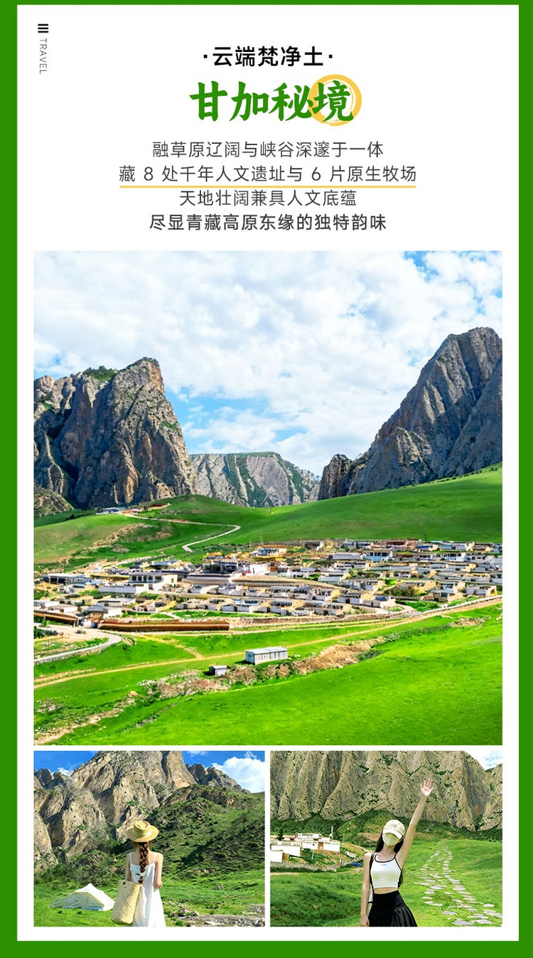 下午,我们探访ZUI后的秘境——【甘加秘境】(车程约40公里,用时40分钟,游玩约3-4小时)。俯瞰千年古城【八角城】的独特智慧,大家也可自由探访【白石崖】及其山脚下的小镇,这片集古城、峡谷、草原、河流于一体的土地,散发着原始而孤寂的美,为我们的甘南之旅画上一个神秘的句号。