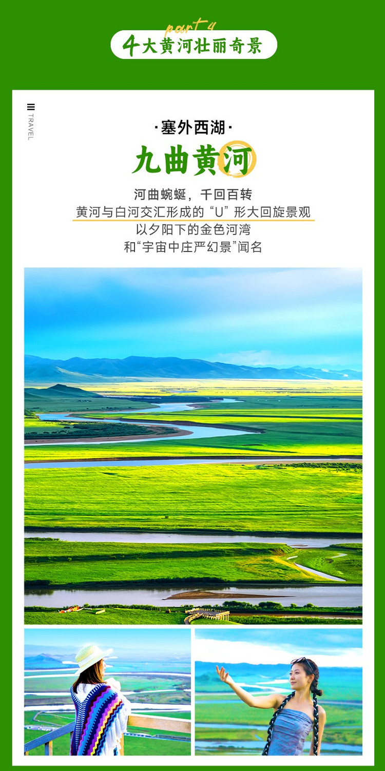 接着前往【九曲黄河第一湾】(车程约50KM,约2-3小时),这里是黄河唯一流经四川的段落,形成"S型"绝美弯道。乘扶梯上山顶,看夕阳将九道弯染成金色,被誉为"宇宙中ZUI浪漫的曲线"。在黄河栈道:近距离拍摄水流与草原,也可以前往红教寺庙,可俯瞰黄河全景!