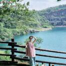 登顶后俯瞰珍珠湖全貌,感叹湖与山浑然一体,山河涌动,生机勃勃景象。