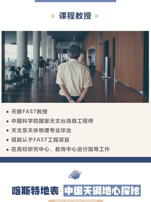 早餐后我们来到【中国天眼】,开启我们的时光之行,我们先进入【平塘天文体验馆】开展活动,进入馆内后,依次经过序厅、天象厅、射电体验厅、儿童天文园、天文科普厅、数码星象厅、太阳厅,了解体验天文知识和射电原理,探索宇宙混沌的奥秘,畅游浩瀚星河,接听来自光年之外的脉冲信号。