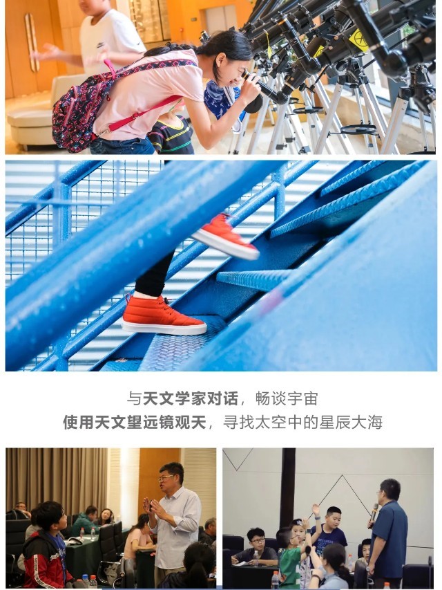 晚上由天文台【中科院老师授课】,交流分享,到了夜晚一起通过望远镜【观察星空】,识别星座。