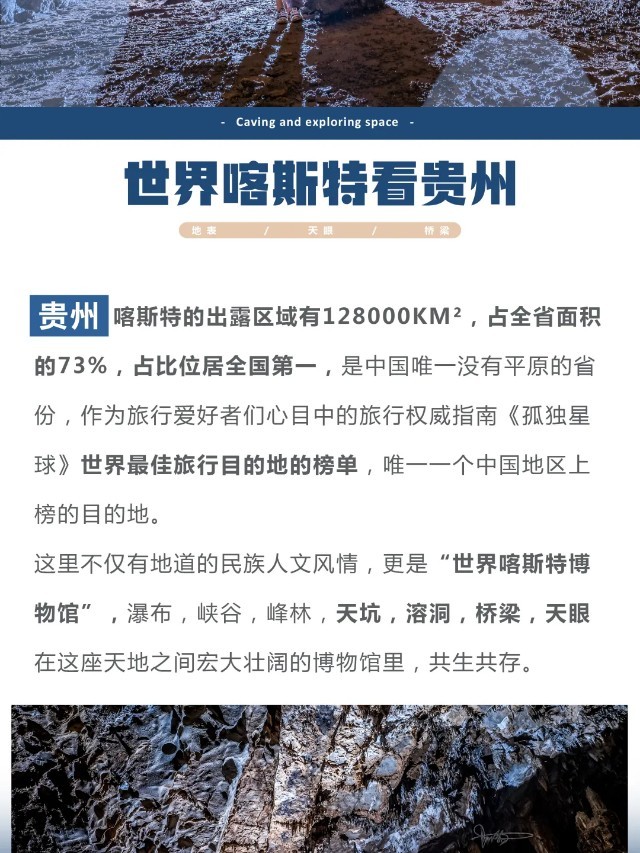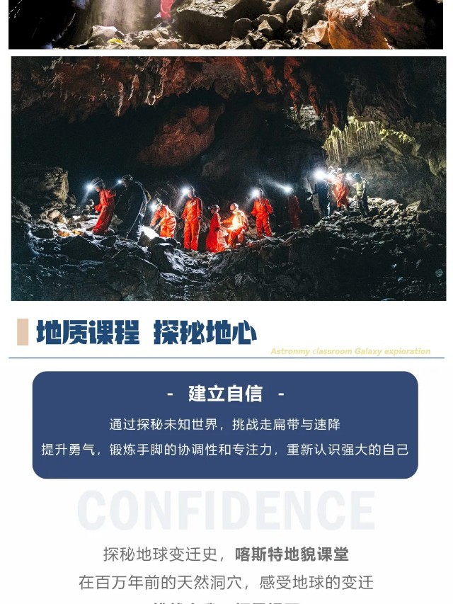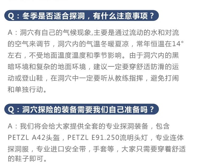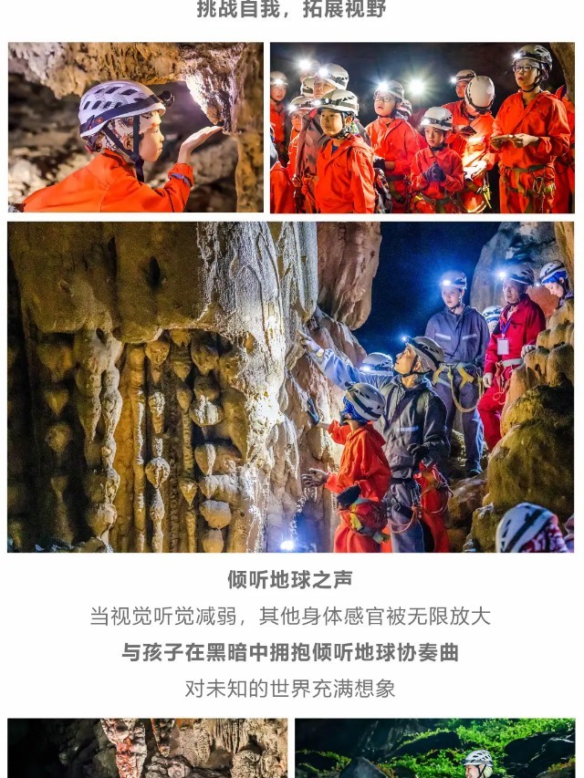数亿年前,贵州还是一片汪洋,存在着大量的海洋生物。之后,沧海桑田,汪洋成陆,教练会在洞穴中开展【喀斯特小课堂】讲解寒武纪时期至今形成的喀斯特地貌【熔岩瀑布】、以及洞里的微生物化石。身临其境在错综复杂的洞内【倾听地球之声】,享受地球协奏曲。矿灯的照耀下这里如同的地下王宫,我们拥抱彼此感受【黑暗冥想】。