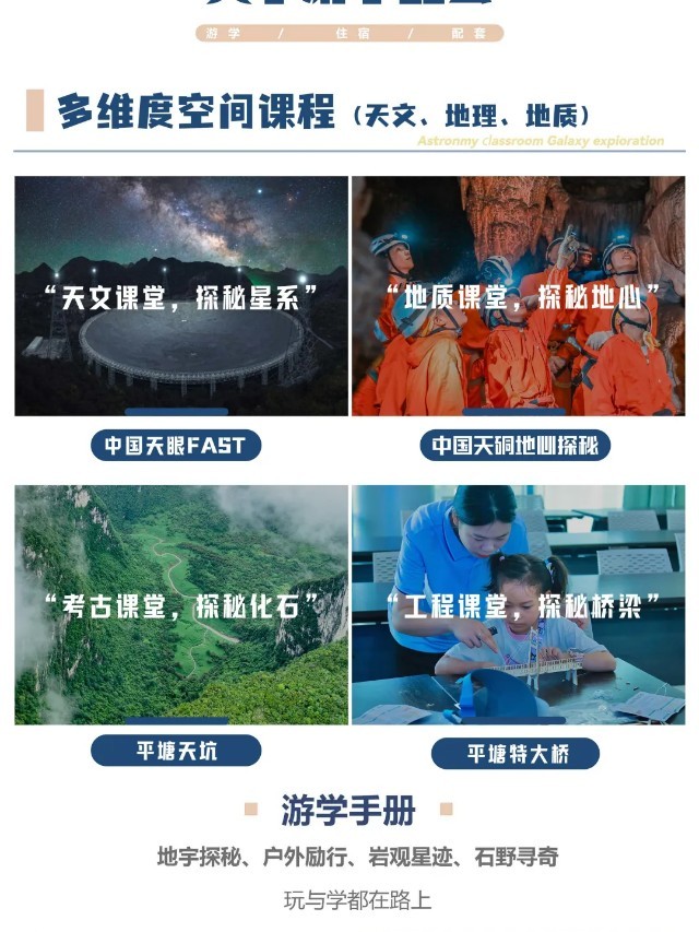 必须夸爆这次这次研学。欢迎晚宴就氛围感十足,孩子兴奋得不行。天硐探秘的刺激就不说了,平塘天文体验馆里更是惊喜满满。孩子们亲手操作天文望远镜观测星球,在 VR 太空舱里体验失重感,玩得不亦乐乎的。登上天眼瞭望台那一刻,震撼感直接拉满