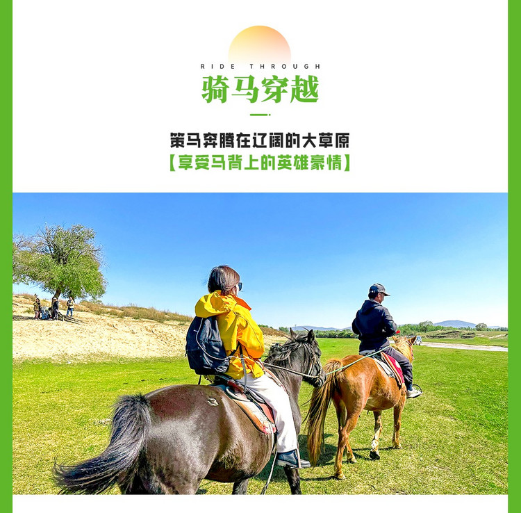 骑马、民族服装拍照等娱乐项目自愿参与,不参加的伙伴可在附近草原自由活动;