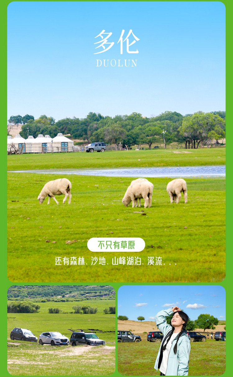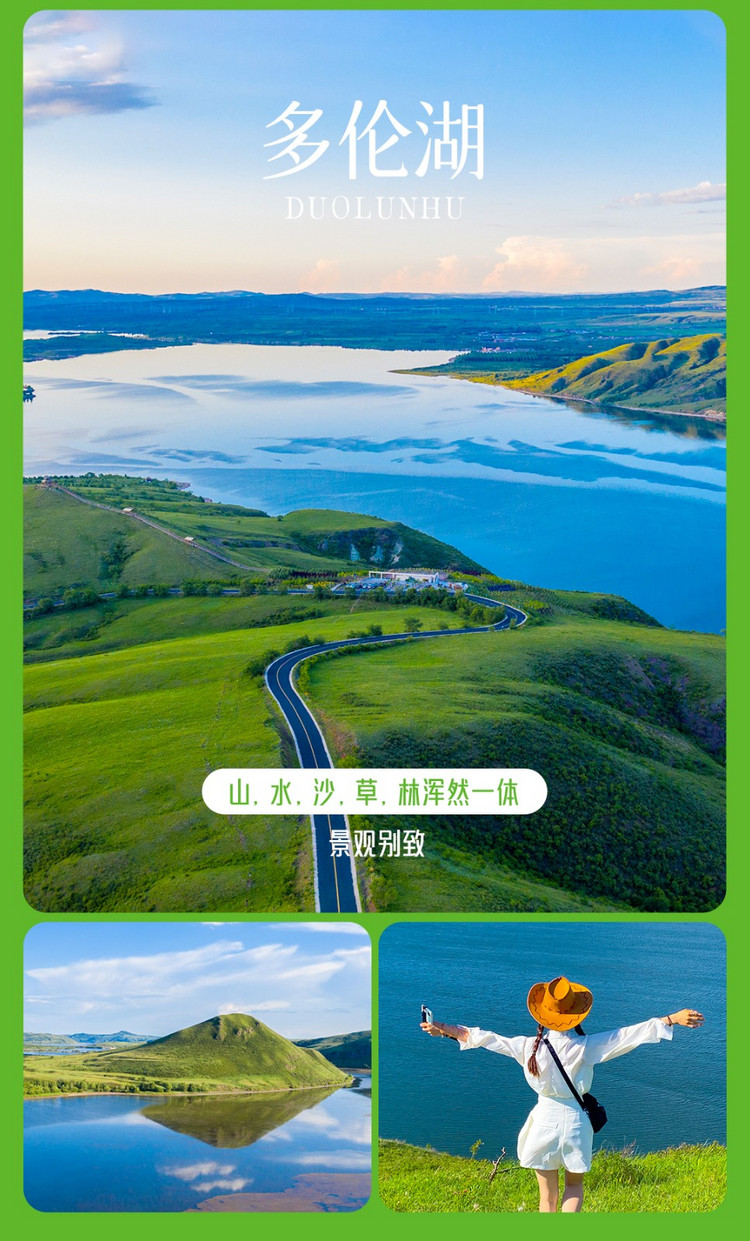 早餐后乘车前往【多伦湖】(车程约30分钟,游玩约3小时)走在依山傍水的环湖路上,映入眼帘的是一座小岛,犹如一条慵懒的鲸鱼浮上水面,正在享受温暖阳光的洗礼。在这里我们可以零距离观赏多伦湖。多伦湖山,水,沙,草,林浑然一体的景象,尽收眼底。
