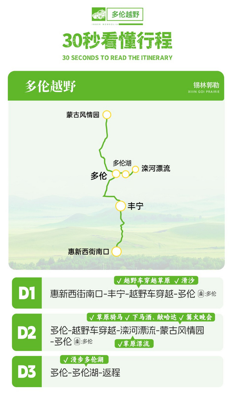 07:30地铁5号线/10号线惠新西街南口C口出发,一定不要迟到,一路向北前往多伦。