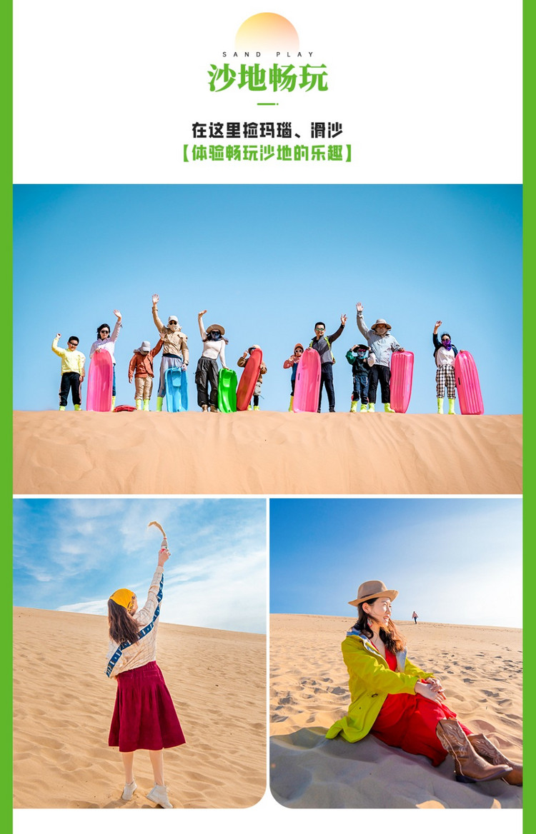 这里是浑善达克沙地的一部分,一次欣赏多种地貌,观看浩瀚的浑善达克沙地风貌的同时,感受沙地越野的激情与刺激。在这里,拿起滑沙板,爬到山丘顶端,体验纯正大自然缔造的【滑沙】。