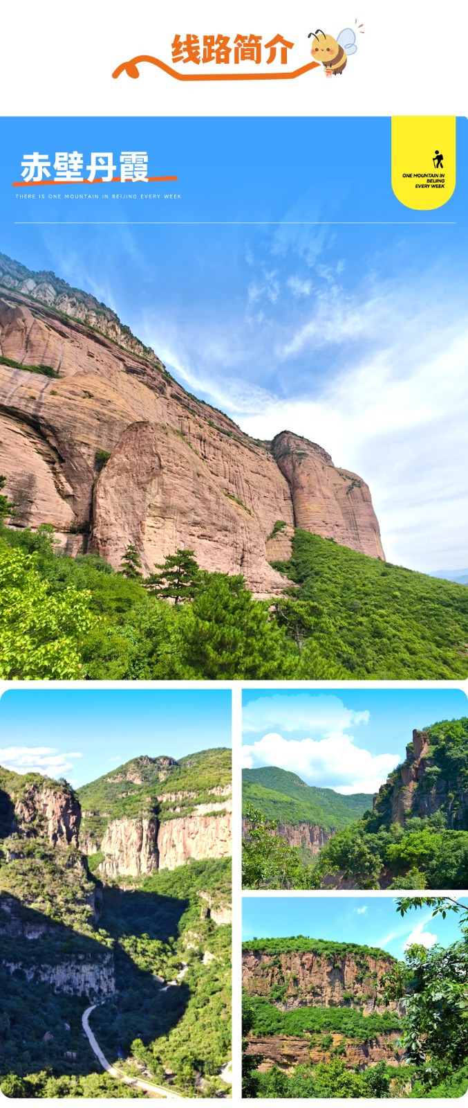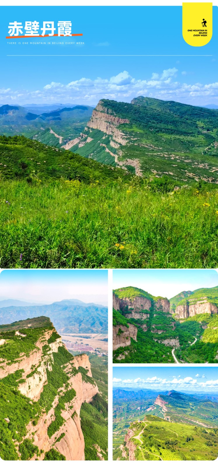 赤壁丹霞位于河北张家口,赤城的丹霞赤壁是一块通体高600米的摩天巨石,三面绝壁,峭如刀削。从南向北,嵯峨的断面延展20公里,当地人称为40里长嵯。史书称它为幽燕第一峰,现代人颂其为“北方第一大丹霞”。据说赤城县的名字就是因这幽燕第一赤壁而得名的。