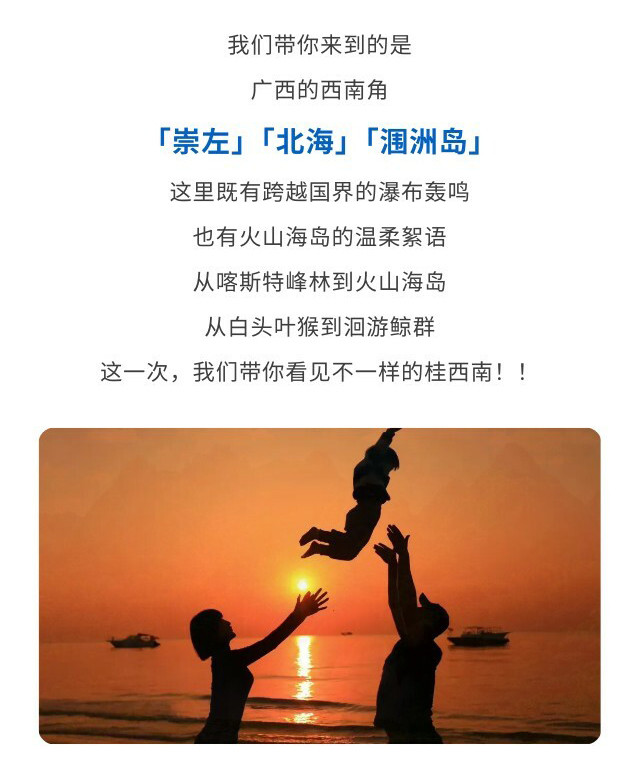 下午抵达北海,直奔有“天下第一滩”美誉的【银滩】自由活动。这里沙质细软,在阳光下洁白如银。您可以赤脚漫步于绵长海岸线,感受清凉海水的冲刷;孩子们可以在滩涂上寻觅小沙蟹、收集贝壳,尽情释放爱玩的天性,享受难得的滨海亲子时光。