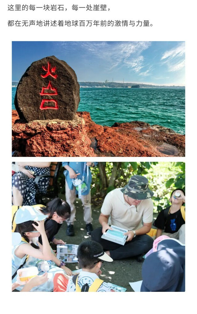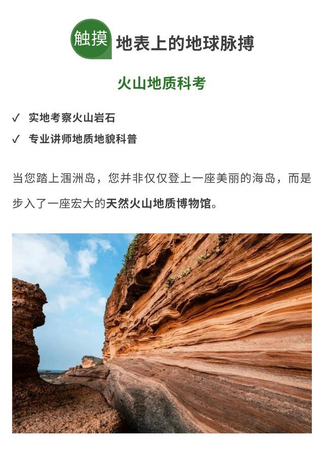 早餐后前往【鳄鱼山火山地质公园】,探寻亿万年前的火山遗迹。观察独特的火山熔岩、海蚀地貌,亲手触摸采集火山岩与珊瑚石标本,在实景中学习涠洲岛的地质演变史,完成最后一堂生动的【自然地理课堂】。