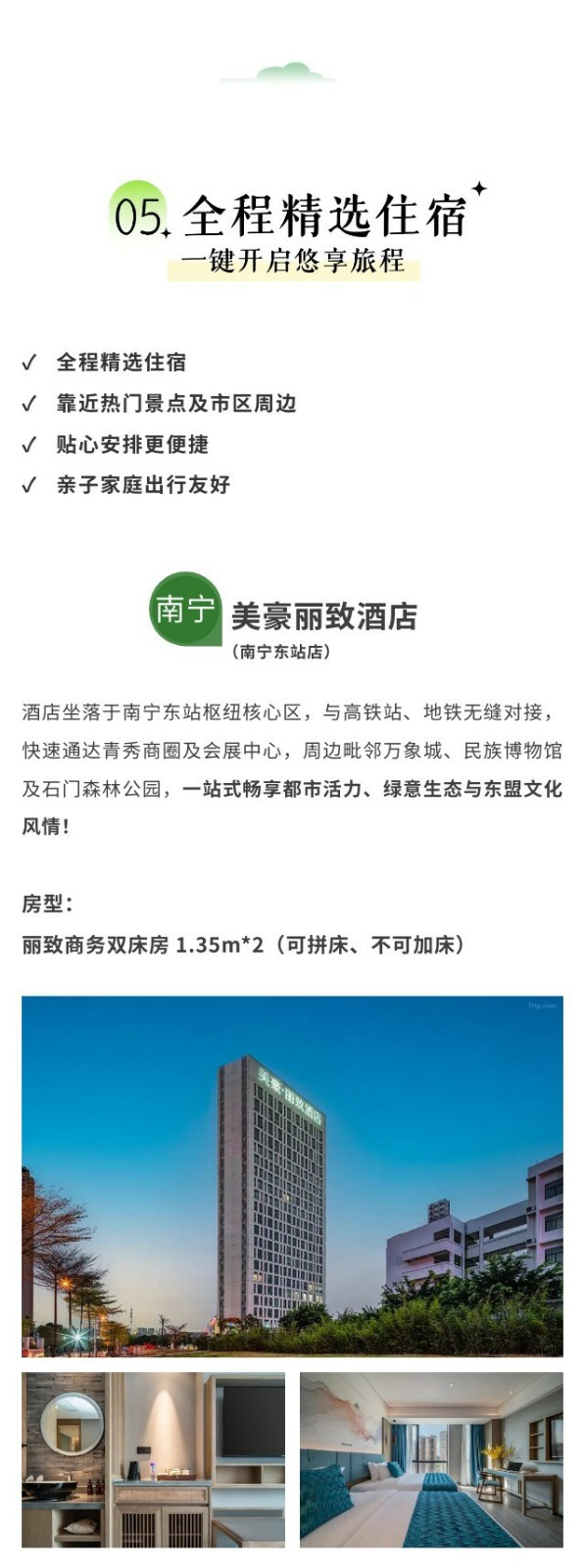 1、请家长下火车或飞机之后自行前往【南宁美豪丽致酒店(南宁朝阳广场明秀路地铁站店)】办理入住,我们有领队在酒店大堂等候;