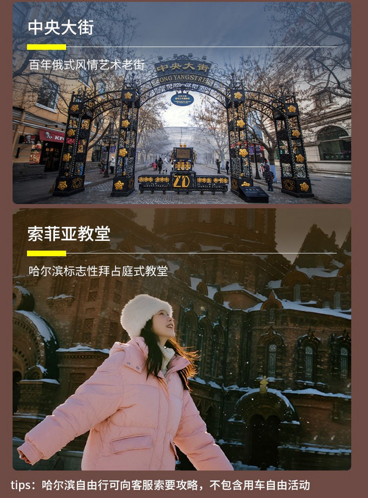 13 : 00集合出发,让我们告别雪乡,来到我们的最后一站-美丽的冰城哈尔滨。