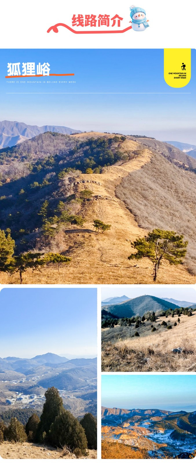 狐狸峪,坐落于蓟州官庄镇,静卧在著名的盘山景区背后。这个村庄因传说中众多狐仙的栖息而得名。四周群山环抱,空气清新宜人。山间小路蜿蜒起伏,金黄色的草甸点缀其间,群山若隐若现,连绵起伏。狐狸峪背靠盘山景区,周围山峦环绕,流畅的小路与金黄色的草甸形成美丽风景,令人心旷神怡。