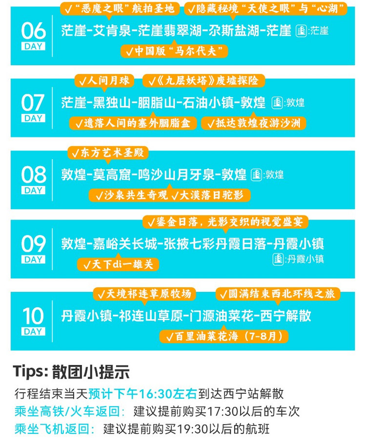 2、行程当天预计17:30抵达西宁市区,建议购买19:00后火车班次或20:00后航班;