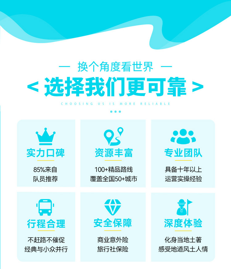 4、行程时间为计划安排,如遇天气、路况等特殊情况,领队将合理调整以确保行程顺利。