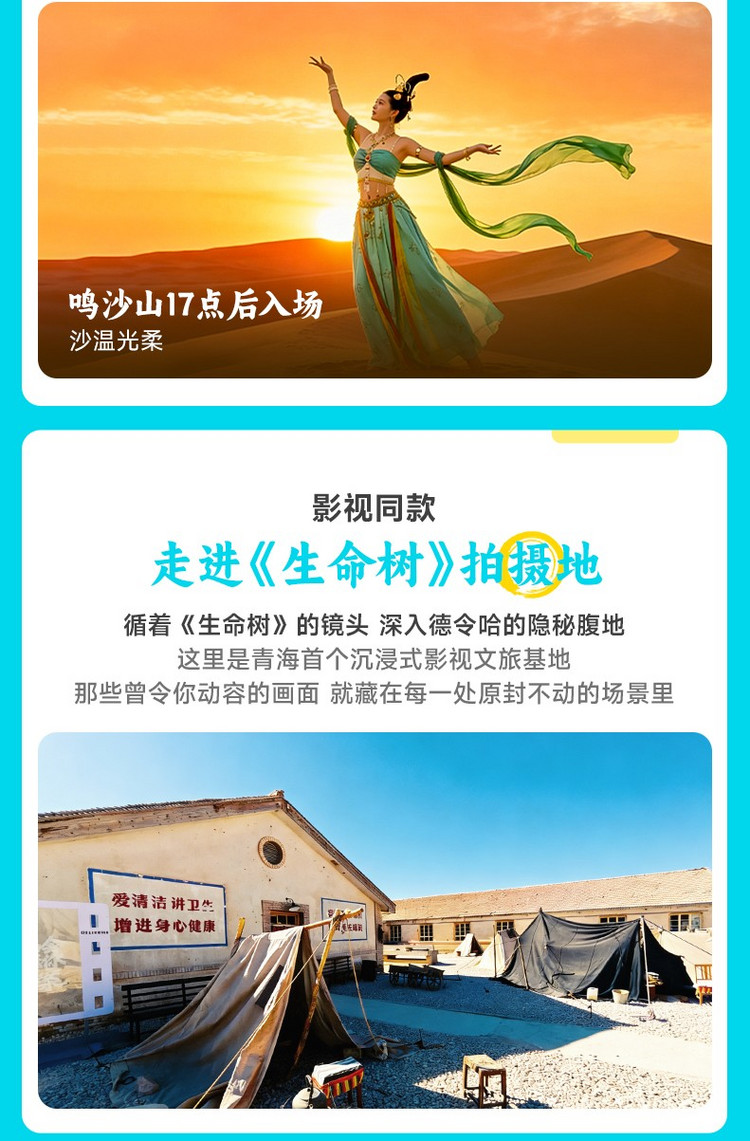 1、茶卡盐湖分为老景区【天空之境】和新景区【天空壹号】两大景区,天空之境以自然景观和盐雕为主,游客较多;天空壹号新增了游乐项目和表演,打卡拍照点更多,行程默认前往【天空壹号】景区(互动体验丰富,游客相对较少);