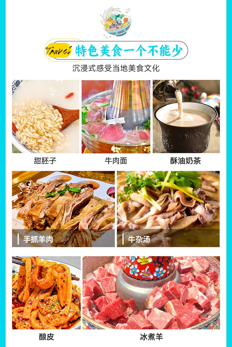 美食推荐:手抓羊肉、炒凉粉、酸奶、面片、酿皮等等