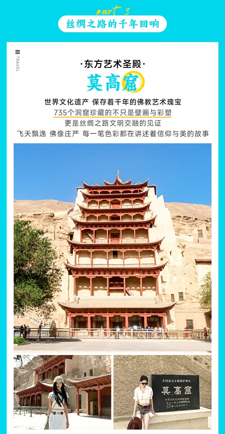 1、早上出发时间以莫高窟预约时间为准,若时间推迟,后续行程时间顺延