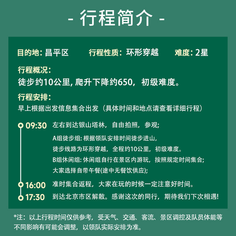 B组休闲组:休闲组自行在景区内游玩,按照规定时间集合;
