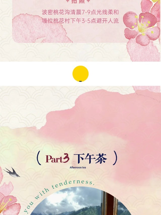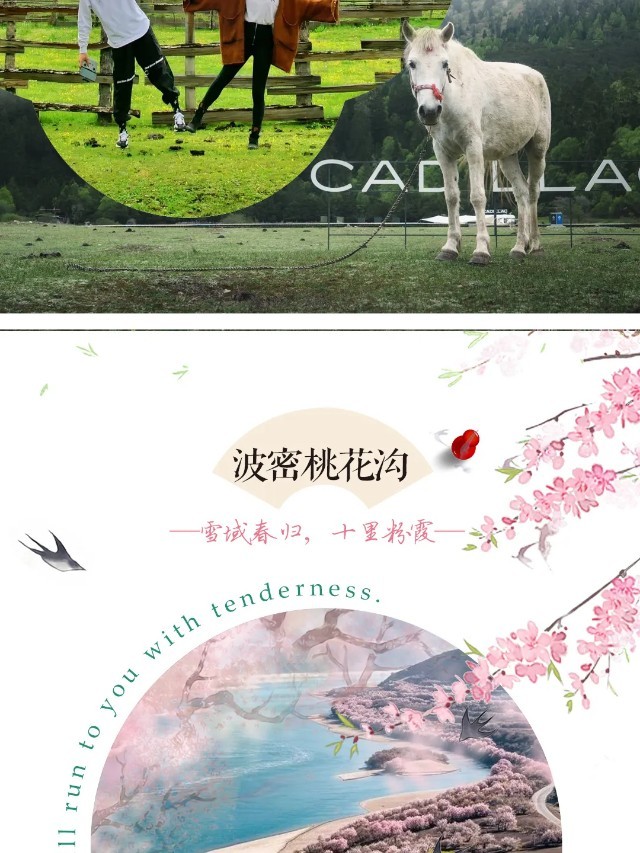 鲁朗用完早餐后前往波密桃花沟,这里的桃树不是人工栽植,都是野生的。几百年来,藏乡人民从没有人破坏和砍伐,这与藏族人喜爱万物生灵有很大的关系。云带挂山腰,雪山影河谷,田地绿色浓,农舍错落间,牛马悠然行,桃花遍地现。这不是文人笔下的仙境,而是人间林芝四月天。