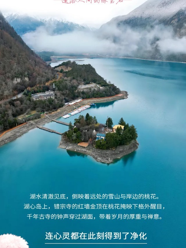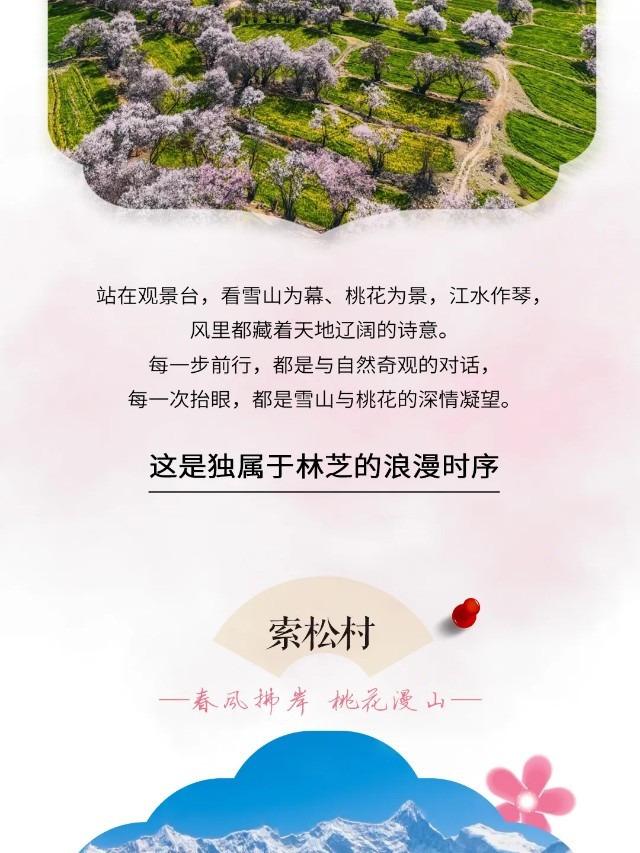 随后驱车前往嘎拉桃花村,这里三月桃花盛开,漫山遍野。桃园依山傍水,极目远眺,眼底尽是尼洋河风光。水中倒映着对面青山,远处雪山分外妖娆。