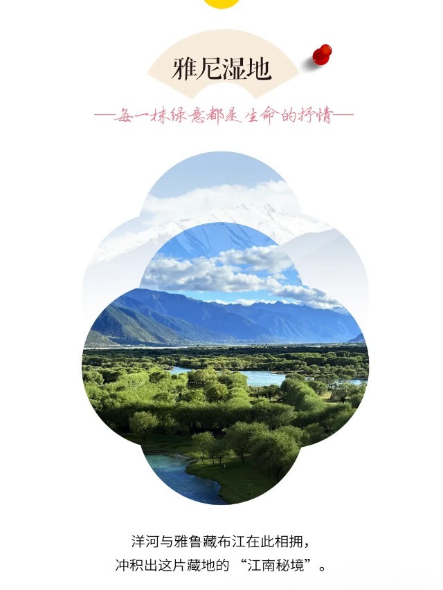 两江交汇带来大量泥沙沉淀,于是在河道三角洲形成形态各异的河谷平原,它们被散乱的河水分割包围,既是孤岛,又通过浅浅窄窄的沙堤相连,形成阡陌纵横,牧场交错,树林和草场共生的雅尼湿地,隔着江岸,巍峨的雪山下是离离村落,迎着清冽的江风,吸着清甜的空气,你不由得赞美道:好一个世外桃源!