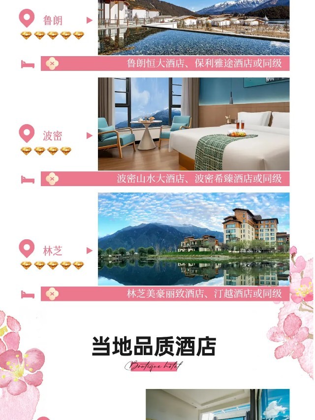 品质型酒店:林芝喜路酒店、林芝鲁朗必居酒店或同级