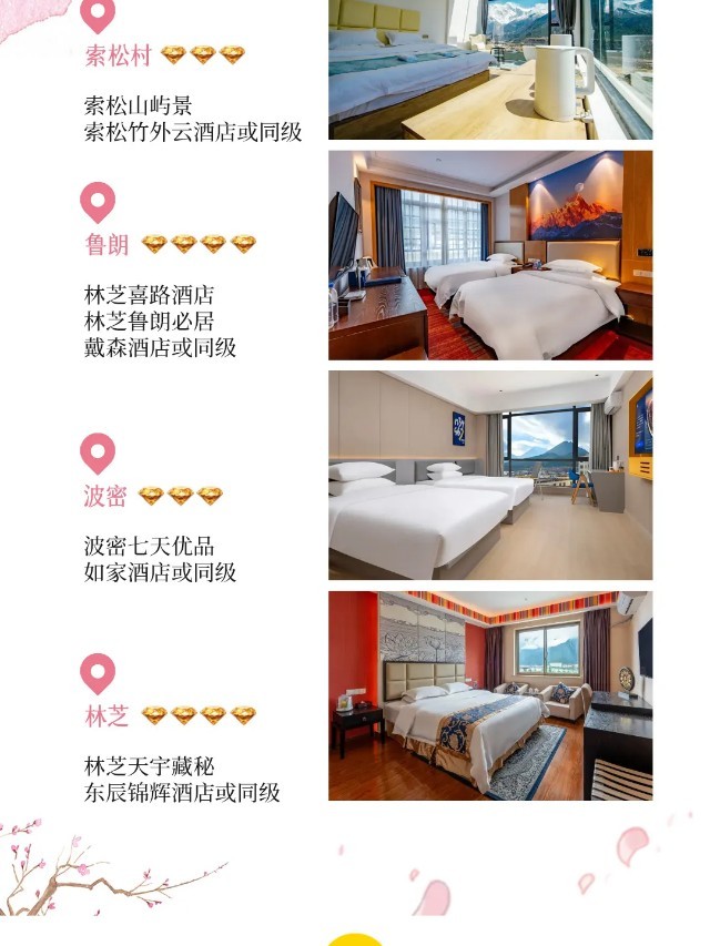 品质型酒店:林芝天宇藏密酒店、林芝东辰锦辉酒店或同级