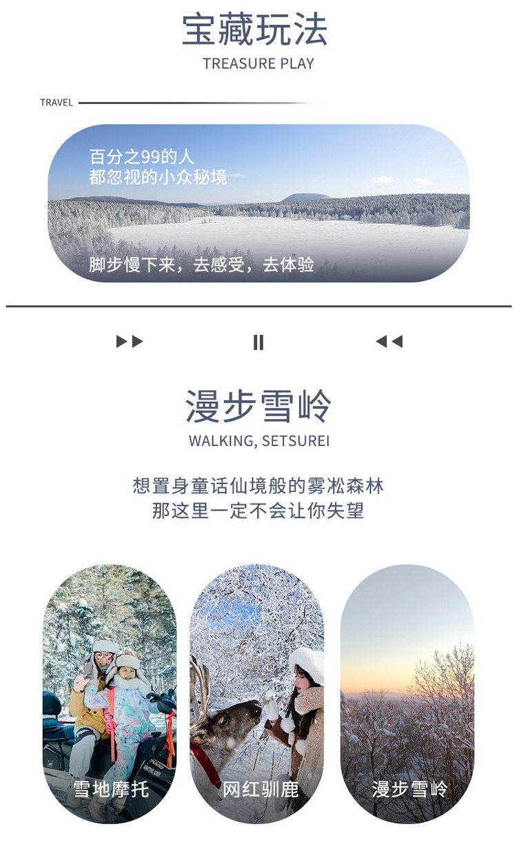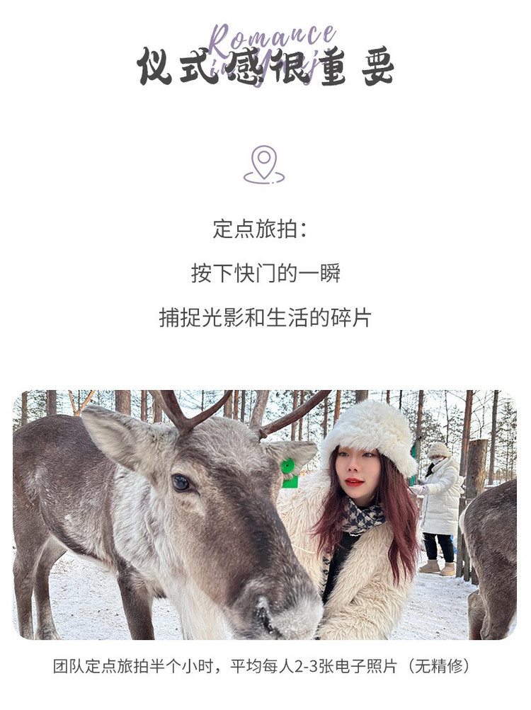 4、 11月下旬之前,如遇气候原因雪量不够,无法运行雪地摩托,需要徒步进入景区观看驯鹿,或者取消雪岭行程,费用现退。