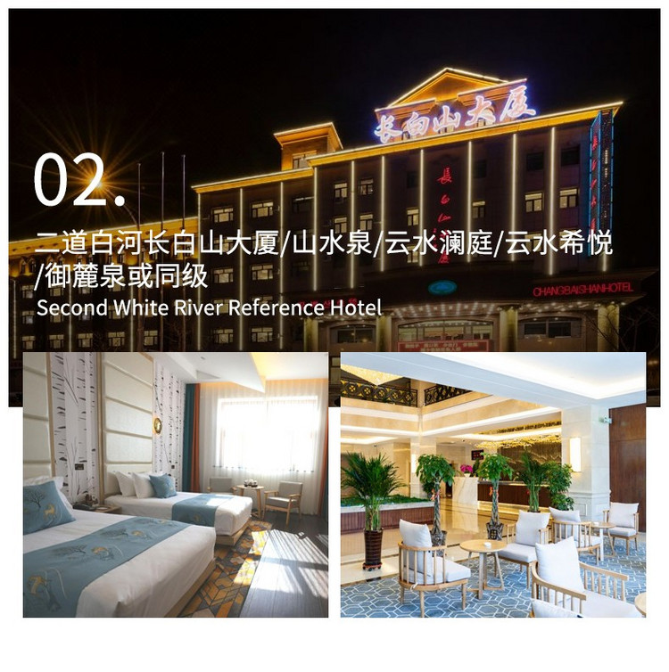 17:00 长白山有一个最美小镇,叫【二道白河】。天池水通过唯一的出口长白瀑布飞流直下,历经一个小时,汇聚到这个小镇,形成二道白河,再往下就是松花江。二道白河很神奇,即便在零下50度的深冬,河岸两边冰雪覆盖,河水依然自由流淌,不会结冰。站在河边,河水清澈见底,但是从上往下看,河流呈黑色,被岸边的冰雪对应,也就是所谓的“白山黑水”。入住的酒店包含【温泉】,大家可以晚点去舒舒服服泡个澡哦~